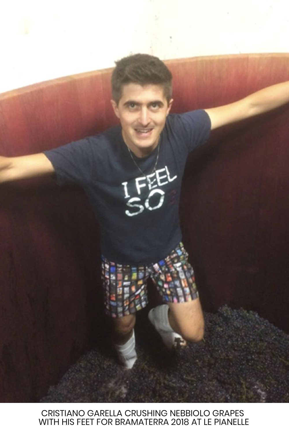 Not far from there, we meet with Cristiano Garella in Brusnengo, another hilltop town. We are in the cellar. Enclosed behind a red stone wall across the road, is Le Pianelle. Here Cristiano and partners grow Nebbiolo, Vespolina and Croatina. Cristiano selects the very best Nebbiolo, which is then pressed manually (more precisely, with the feet!), fermented separately and then blended with a small percentage of Croatina and Vespolina. This wine is aged to become Bramaterra.